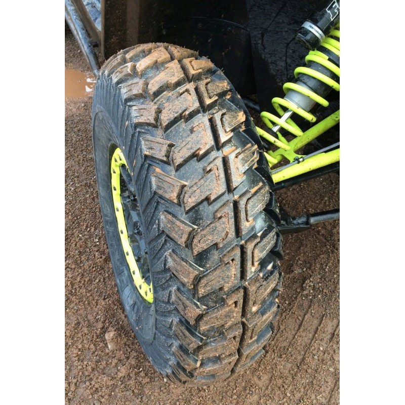 A causa di molte ore di test abbiamo perfezionato il progetto corona pneumatici per Side by Sides. Questa forma di corona è fondamentalmente un mix di autocarri leggeri e pneumatici ATV classici, dove la rotondità fornisce sterzo liscia del monitoraggio anteriore e perfetto nella parte posteriore su tutta la corsa delle sospensioni. È possibile eseguire le stesse dimensioni nella parte anteriore e posteriore, rendendo pneumatico cambia meno complicato.